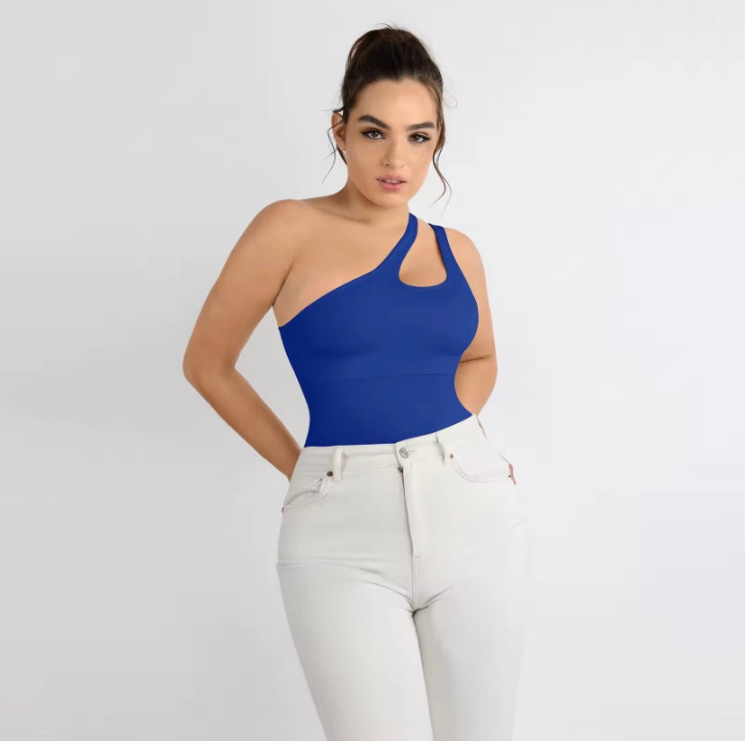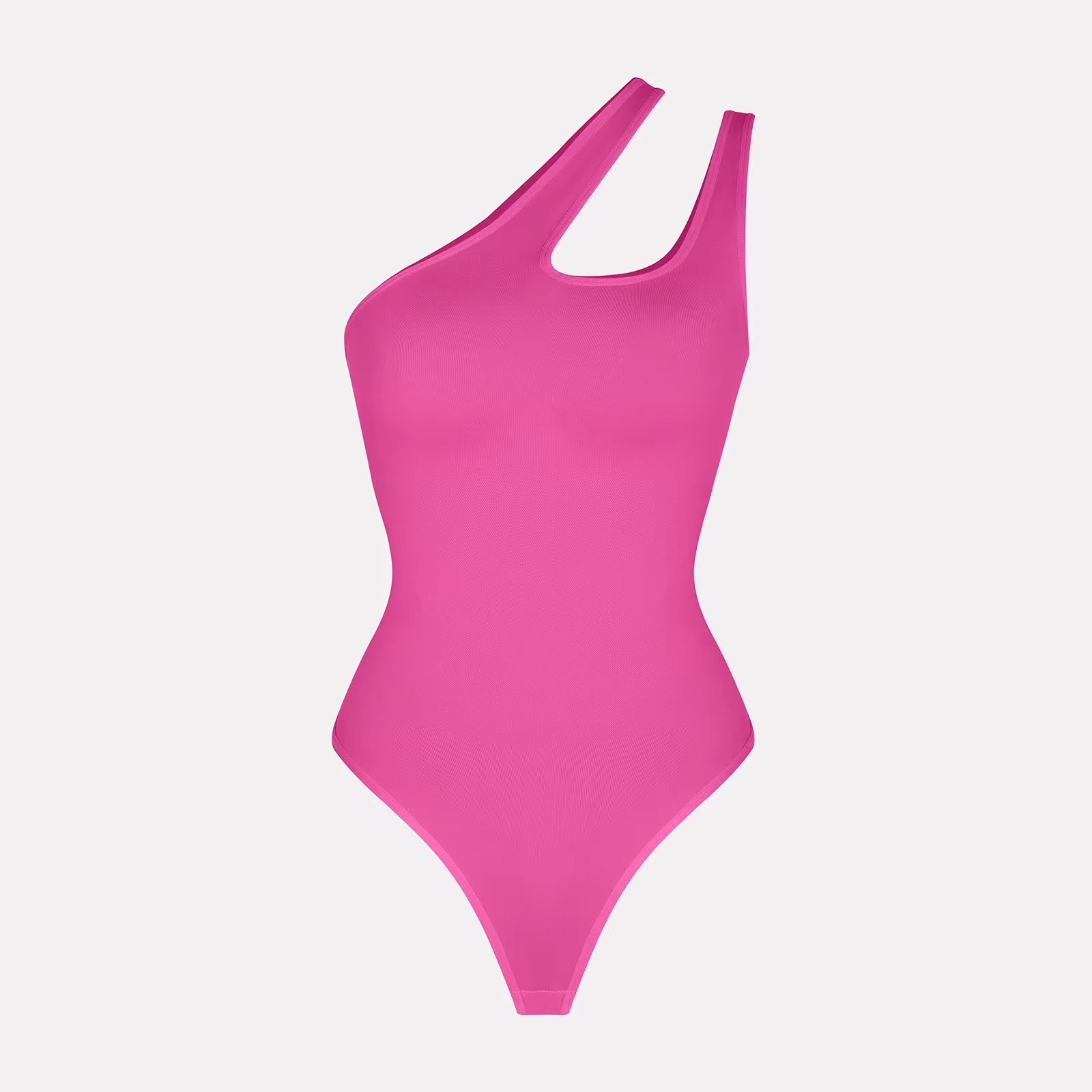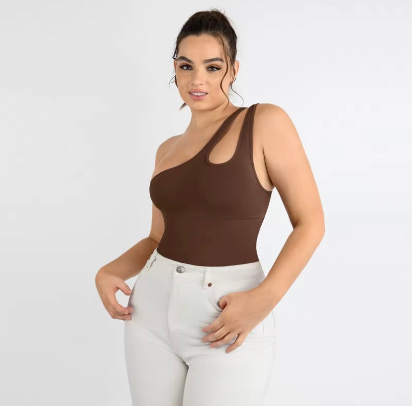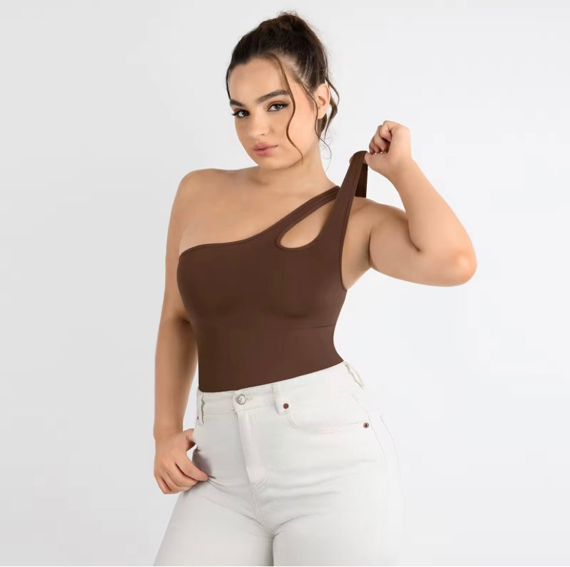 Crafted from a premium, figure-hugging blend, this one-shoulder silhouette contours your shape while offering all-day comfort. The asymmetrical neckline adds a modern twist, making it perfect for both elevated everyday wear and chic evening styling.