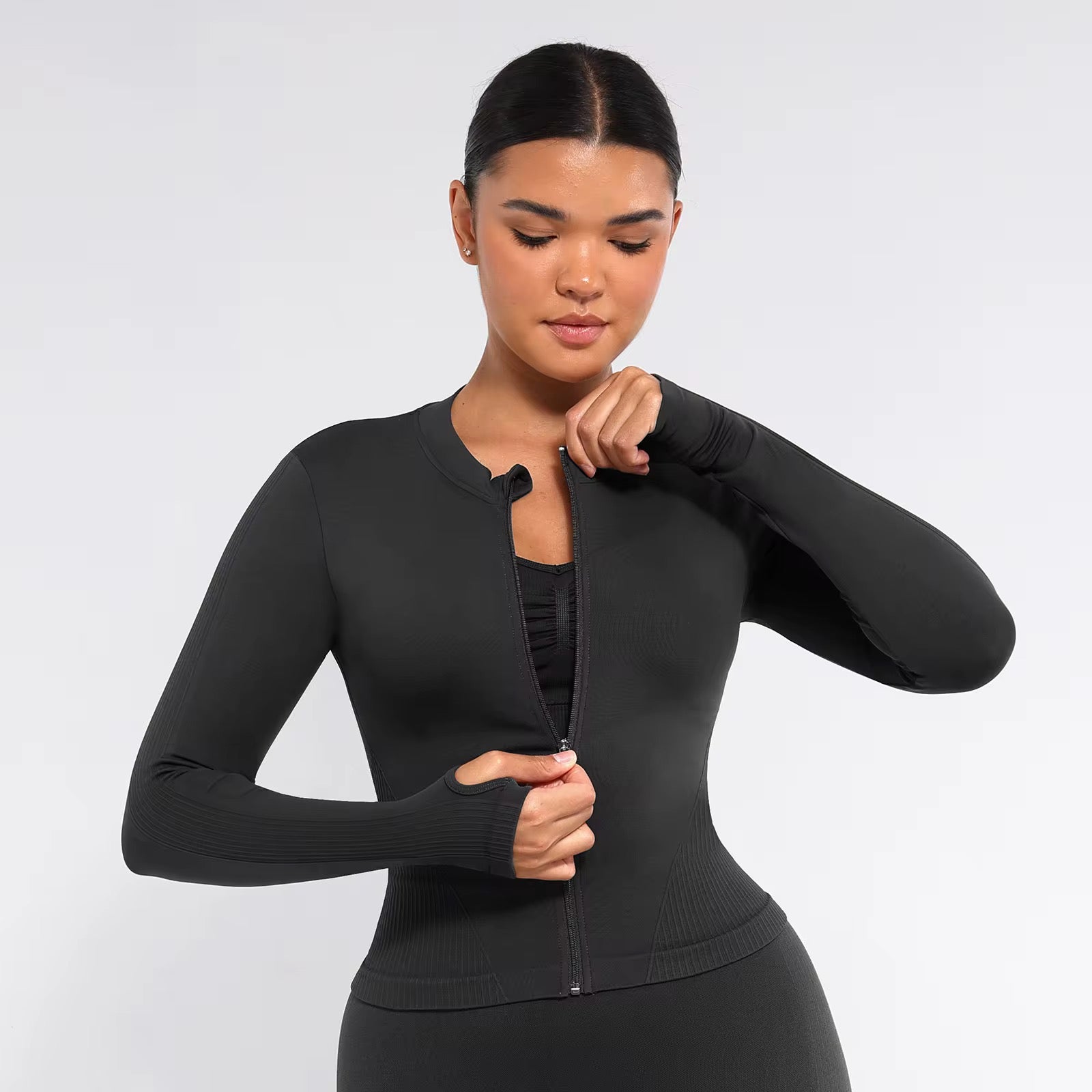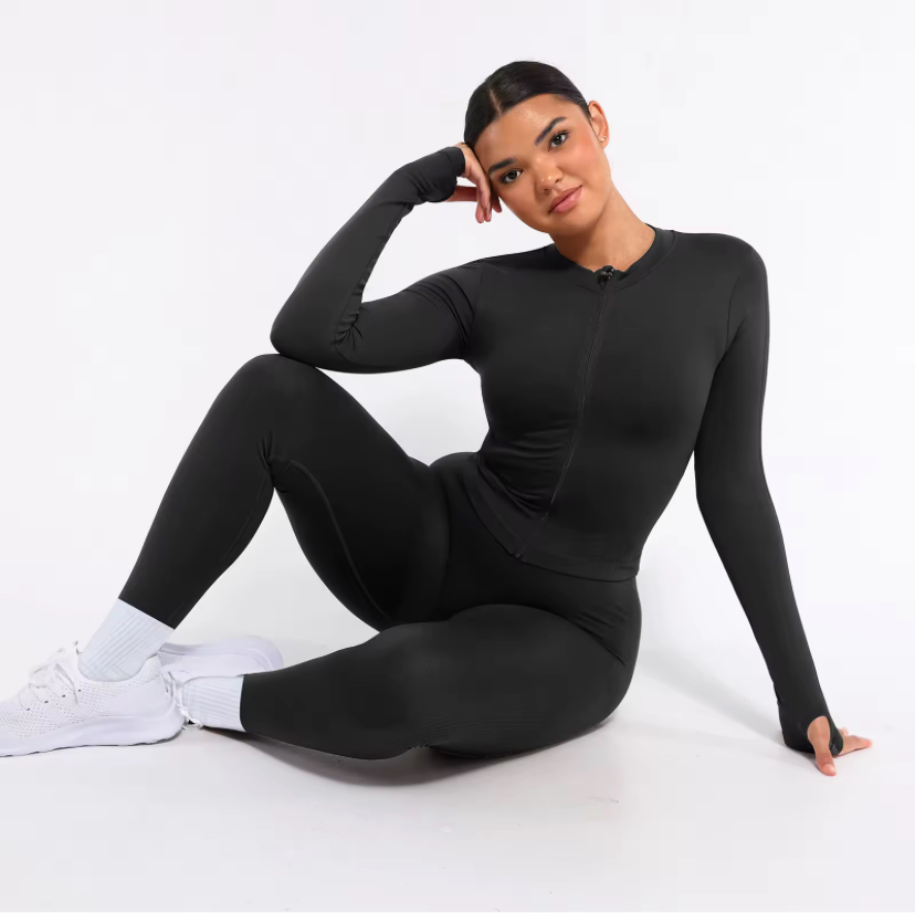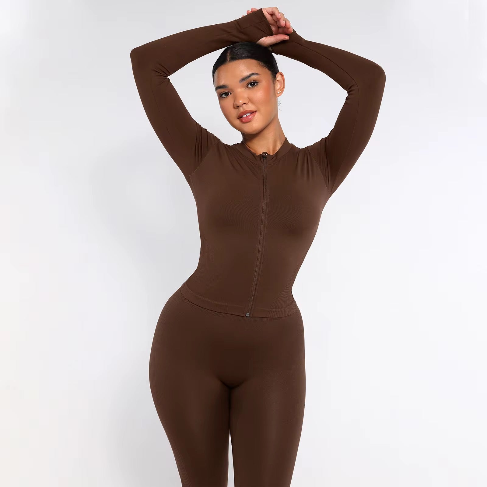 Upgrade your activewear game with the ultimate triple threat: a sculpting sports bra, figure-hugging leggings, and a lightweight zip-up jacket — all designed to move with you. Made with ultra-soft, stretchy seamless fabric that lifts, smooths, and supports in all the right places.